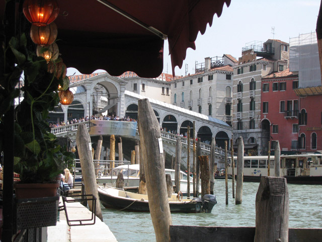Venice 7784; Rialto Bridge from our lunch table